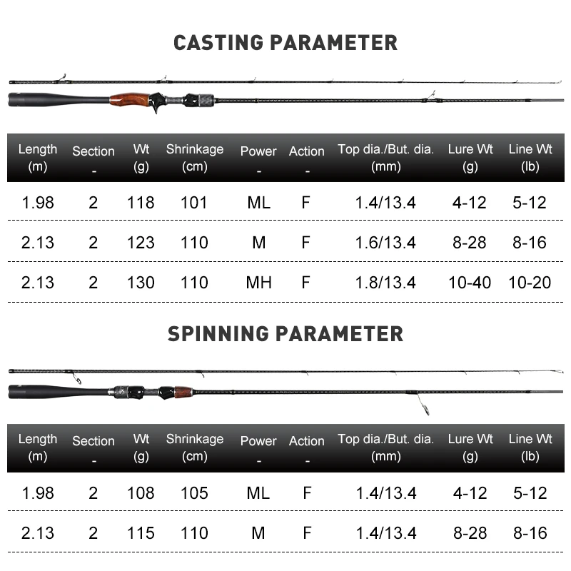 Kingdom SOLO Carbon Spinning 1.95m 2m Fishing Rods With FUJI Reel Seat And Aluminum Oxide Guides Casting Fast Action Travel rods