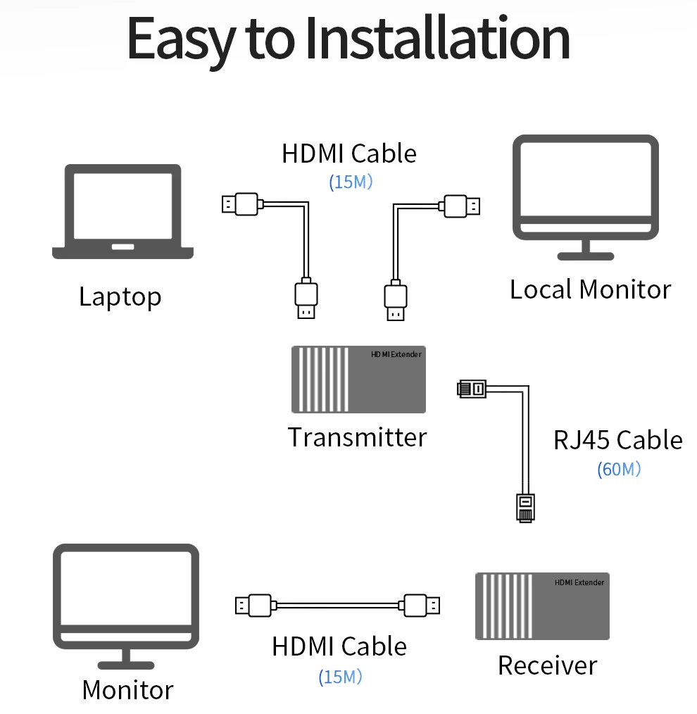 Related Product for Unnlink 60M HDMI Extender with Local Output FHD 1080P@60Hz CAT6/7 Network LAN RJ45 Ethernet IR Tran