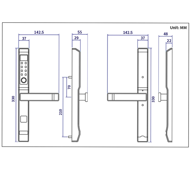 European Type Aluminium Door Smart Fingerprint Door Lock Stainless Steel Sliding door Lock
