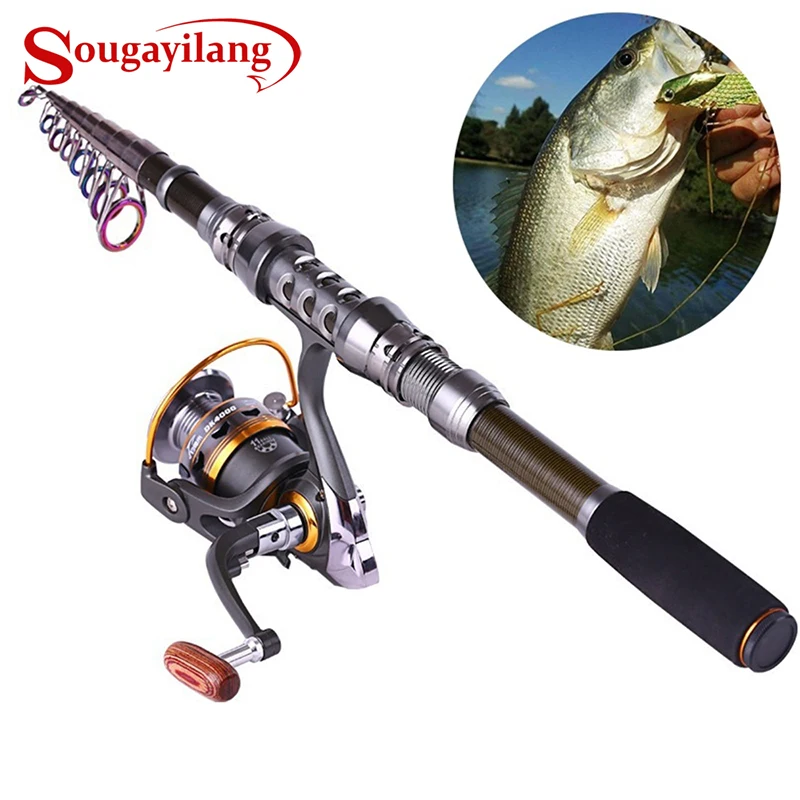 Luxury Sougayilang Telescopic Fishing Rod Reel Combos Fishing Pole Spinning Reels Fishing Carrier Bag Lure line Sets For Travel FishingEarn 8% Cash Back, VALID UNTIL TOMORROW