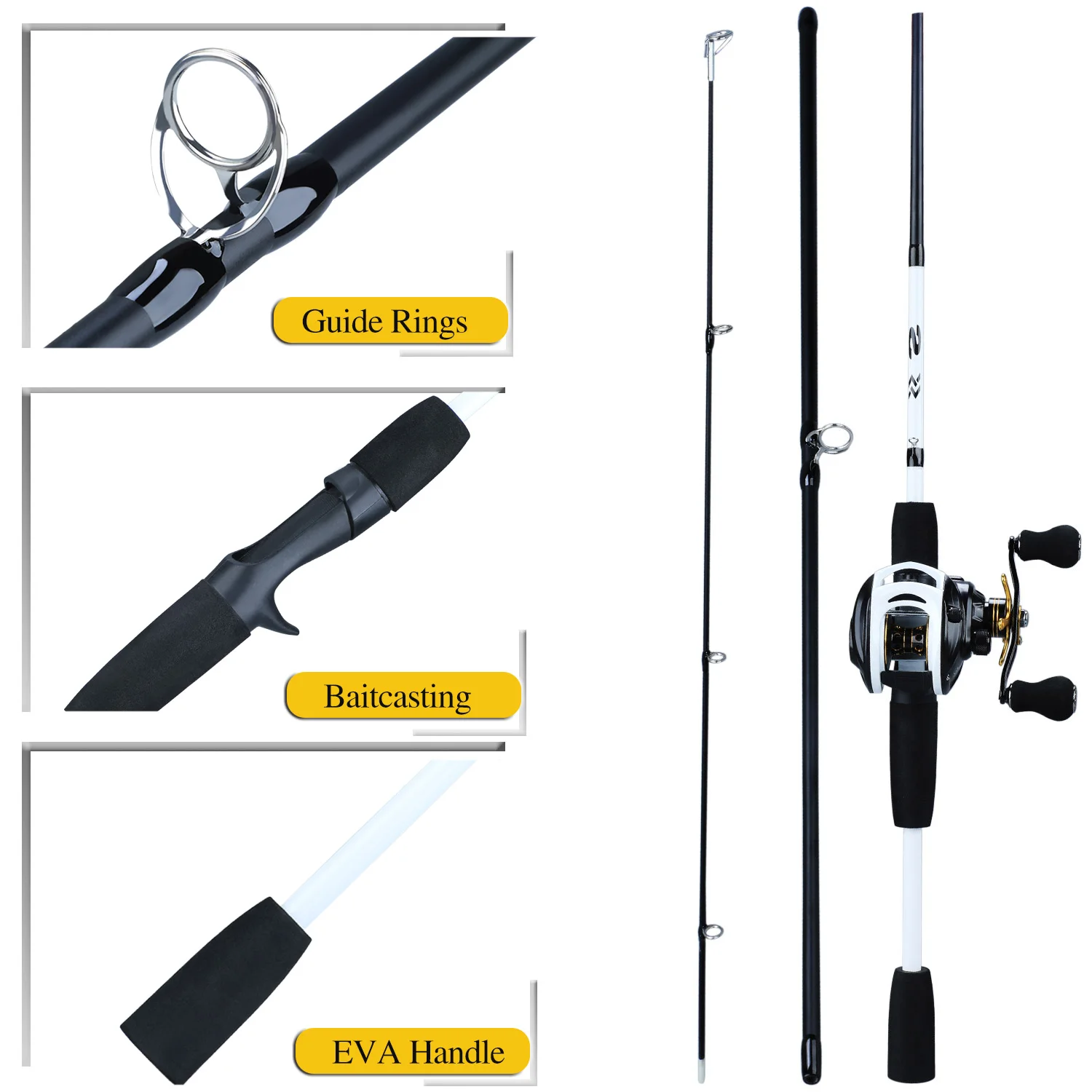 Related Product for Sougayilang 3 Sections 175CM Lure Fishing Rod and 9+1BB Baitcasting Reel Lure Rod Combo Travel Fish